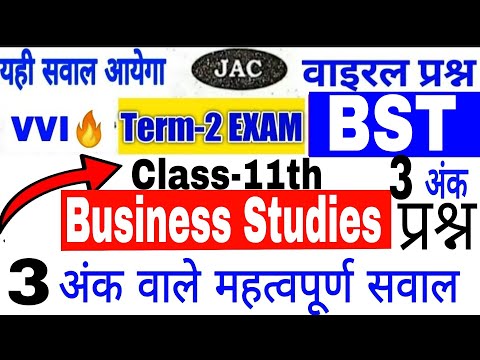 3 Mark's BST Business studies Class 11th Term-2 Exam Important questions jac Board 2022 - Business Ideas